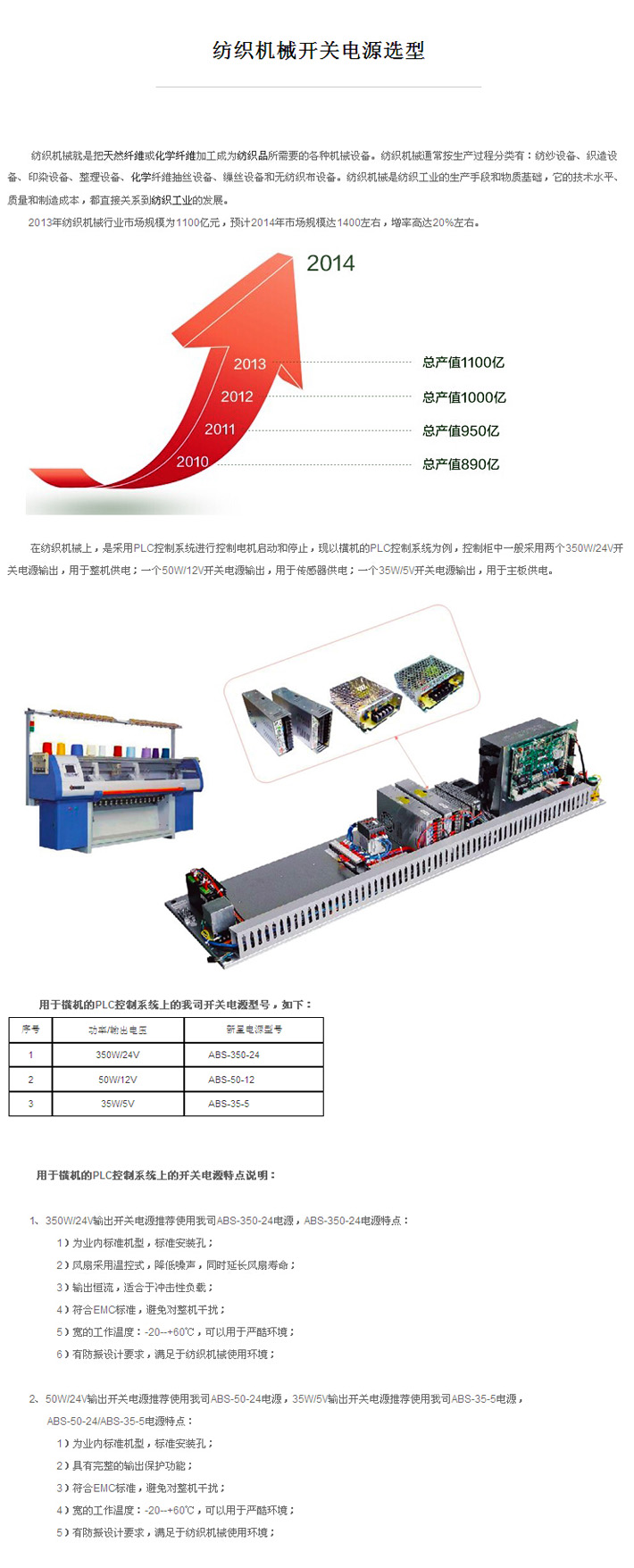 紡織機械開關電源選型